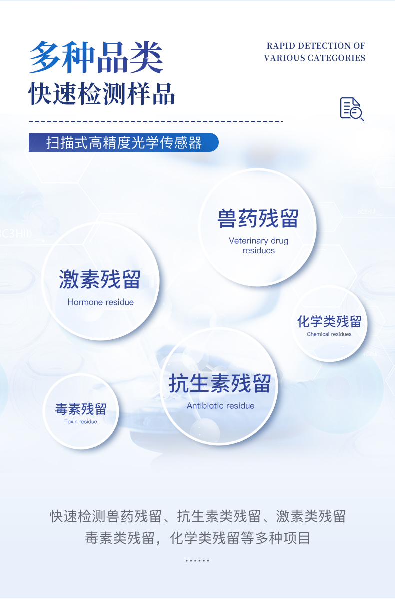 瘦肉精檢測儀可現(xiàn)場快速檢測鹽酸克倫特羅、萊克多巴胺、沙丁胺醇、己烯雌酚、喹乙醇等。儀器預(yù)留其他項目檢測程序和端口,根據(jù)日后需求可方便的自主增加檢測項目。日后可升級為檢測抗生素、獸藥殘留、動物疫病、病害肉、的綜合類型儀器。